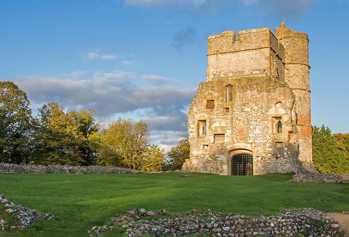 The striking twin-towered gatehouse of 14th century Donnington Castle, near Newbury, survives within impressive earthworks. It shows the luxury enjoyed by Sir Richard Abberbury, Donnington’s builder, whose private quarters lay within it. Both Henry VIII and Elizabeth I are thought to have stayed here.